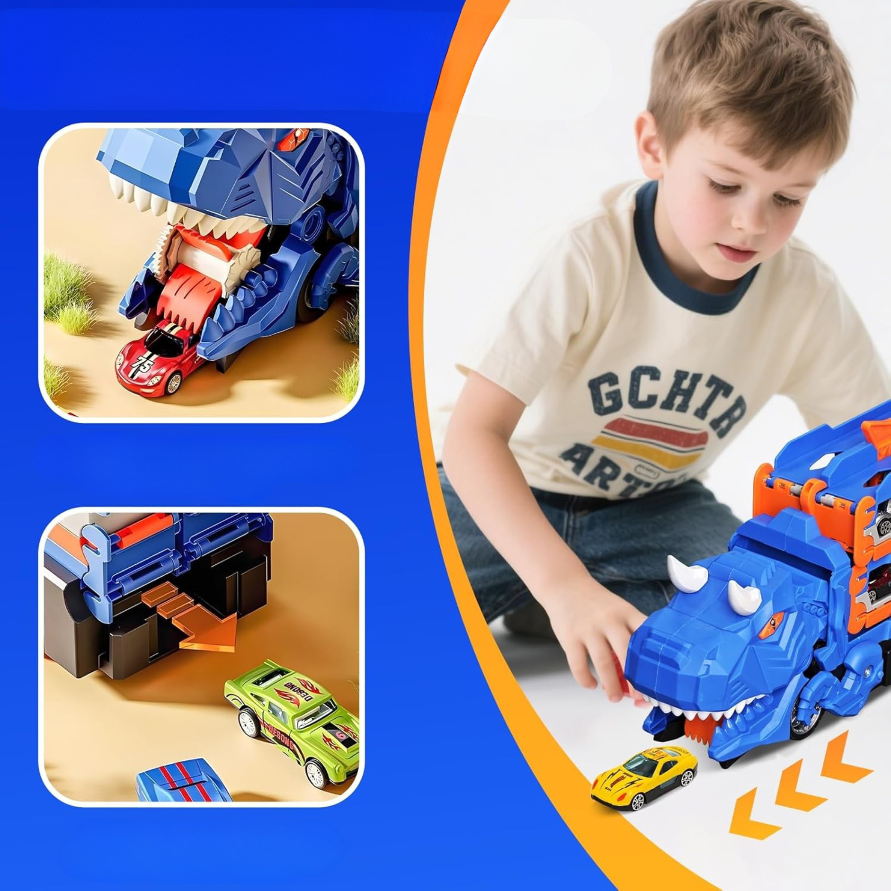 Obserwuj, jak imponujący dinozaur ożywa! Zamyka i otwiera paszczę, pochłaniając miniaturowe autka podczas jazdy. Realistyczny mechanizm zapewnia niesamowite wrażenia wizualne i edukacyjne.