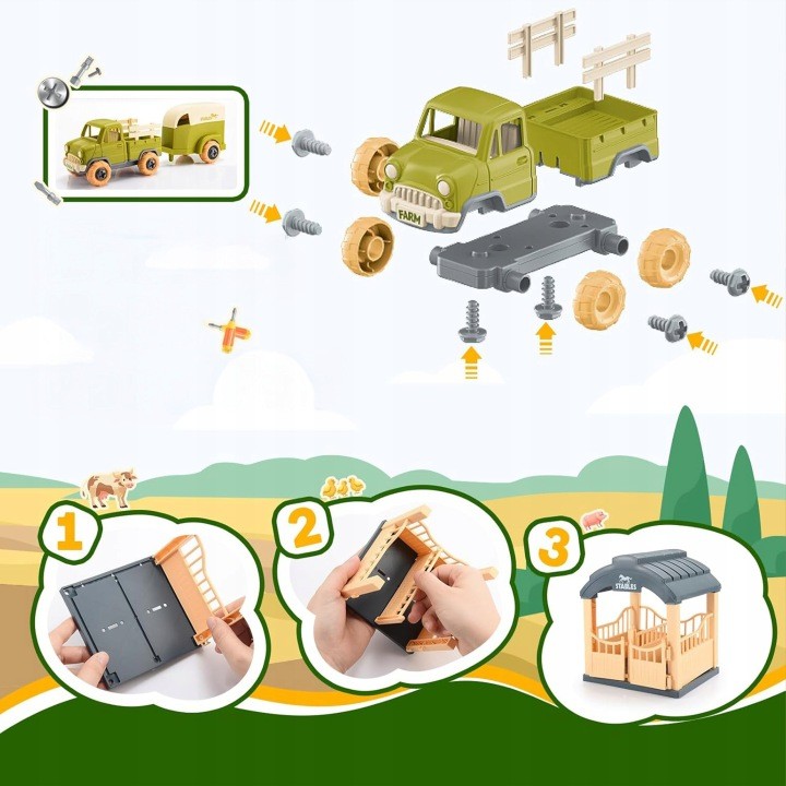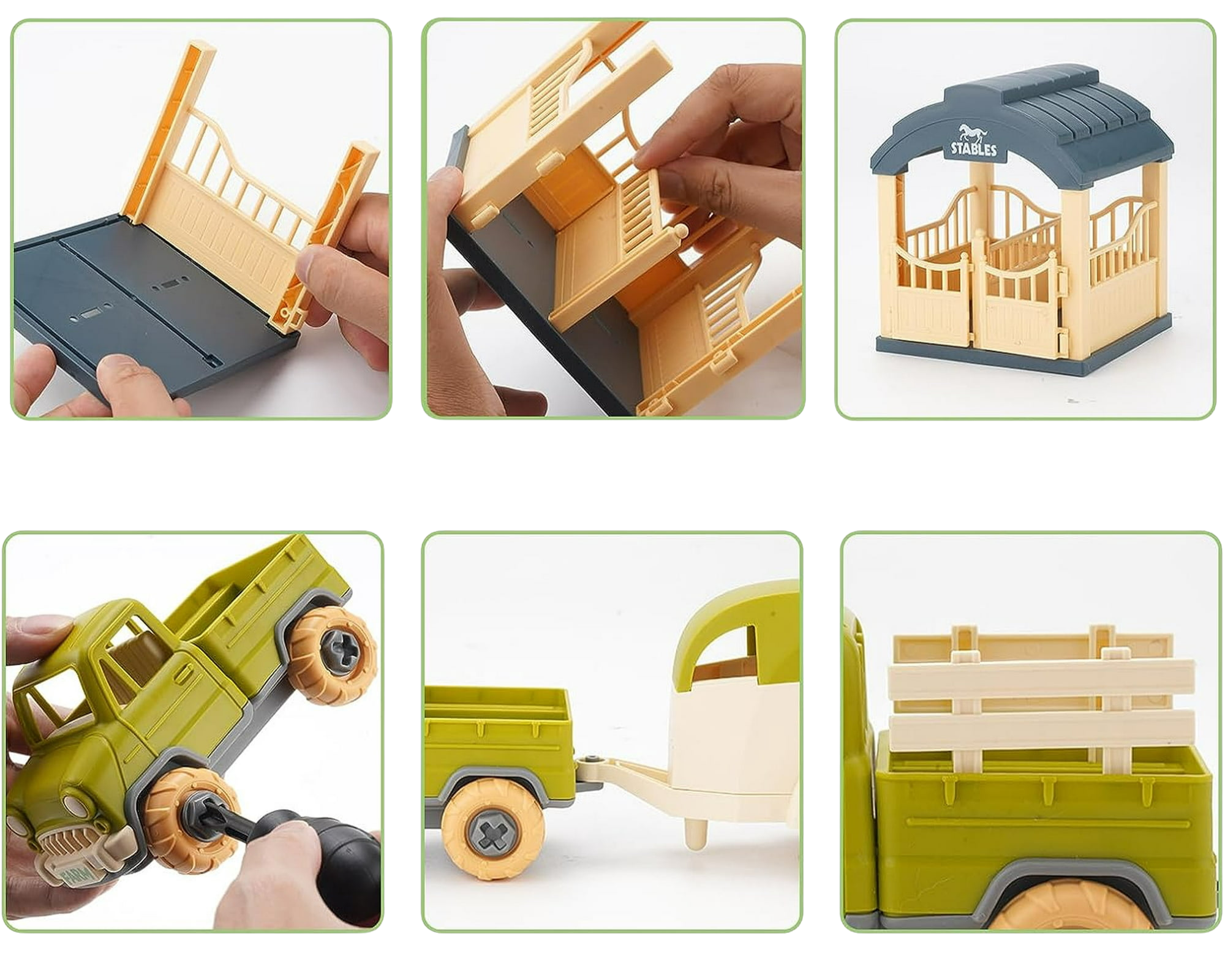 Dzięki wielu elementom dziecko może przewozić konie, budować stajnię, opiekować się zwierzętami i odgrywać realistyczne scenariusze z życia na wsi. Każda zabawa to nowa przygoda!