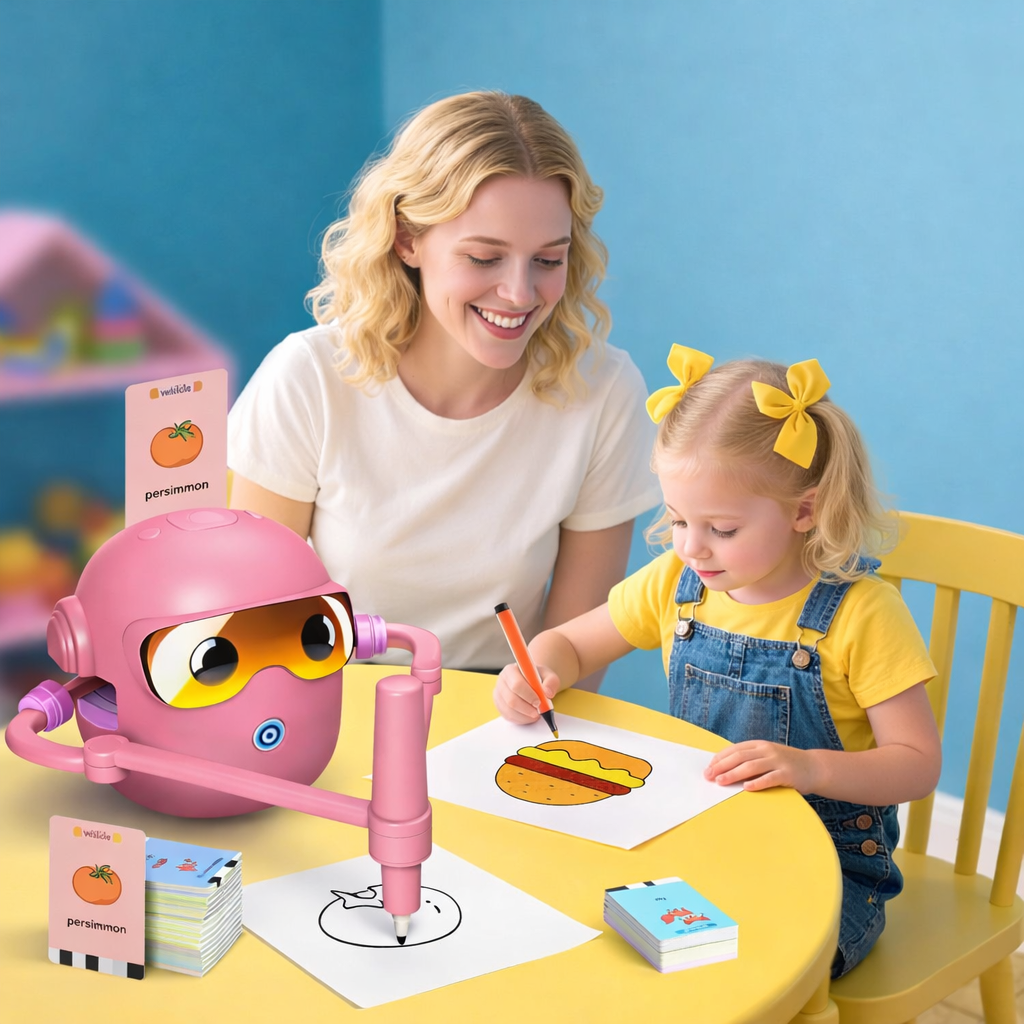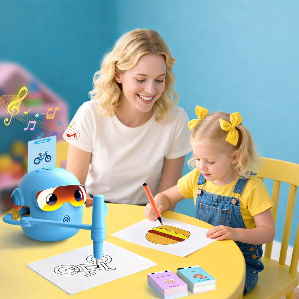 Pozwól dziecku odkryć świat rysowania w nowoczesny i angażujący sposób. Interaktywny robot rysunkowy to zabawka edukacyjna, która uczy poprzez obserwację i działanie, pokazując krok po kroku, jak tworzyć rysunki.